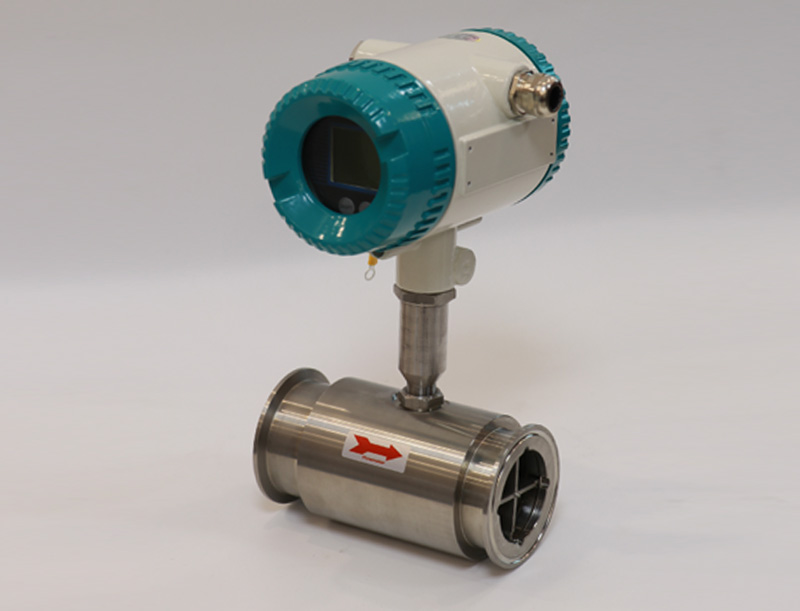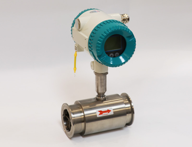 液体涡轮流量计是叶轮式流量计的主要品种,它由传感器和转换显示仪组成,传感器采用多叶片的转子感受流体的平均流速,从而推导出流量或总量。涡轮流量计是一种速度式仪表,它具有精度高,重复性好,结构简单,运动部件少,耐高压,测量范围宽,体积小,重量轻,压力损失小,维修方便等优点,用于封闭管道中测量液体体积流量和总量。它先将流速转换为涡轮的转速,再将转速转换成与流量成正比的电信号。其输出信号为频率,易于数字化。感应线圈和磁体一起固定在壳体上。当铁磁性涡轮叶片经过磁铁时,磁路的磁阻发生变化,从而产生感应频率信号。同时将脉冲频率经过频率-电压转换以指示瞬时流量。叶轮的转速正比于流量,涡轮流量计的输出是频率调制式信号,不仅提高了检测电路的抗干扰性,而且简化了流量检测系统。广泛用于测量封闭管道中腐蚀性较小,且无纤维、颗粒等杂质的液体。还可以进行定量控制、超量报警等,是流量计量和节能的理想仪表。已广泛应用于石油、化工、科研、国防、计量等领域。 | |
